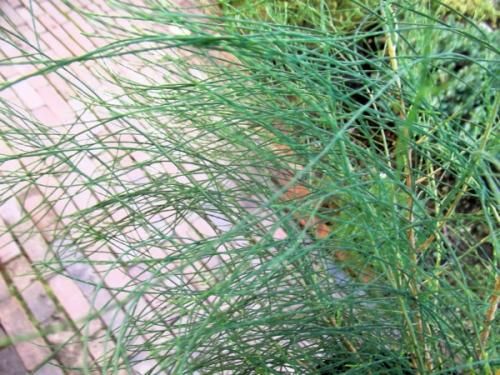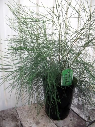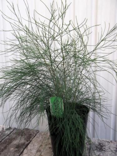 松葉のように細長い葉に見える部分は実は茎で葉は退化しています。淡い緑色の花の後に楕円形のマツカサ状の実がなります。樹高3m。雌雄同株。