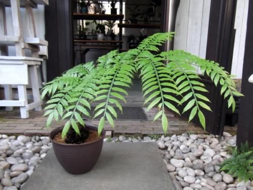 大型の常緑性のシダの種類で成長すると葉の長さは1mほどにもなります。古い葉が落ちた後が黒褐色のゴツゴツした塊状になるのが特徴です。