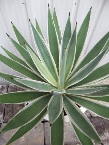 覆輪白斑が入る剣状葉の美しい姿のアガベです。葉の周縁には細かい刺があり、先端は鋭く尖っています。