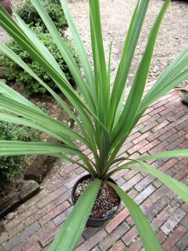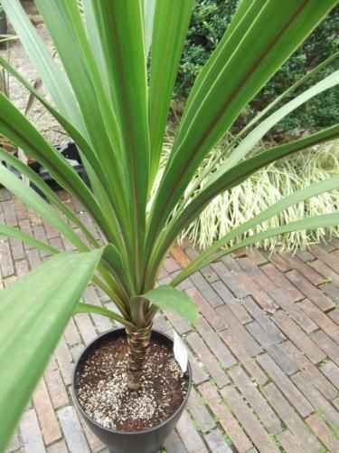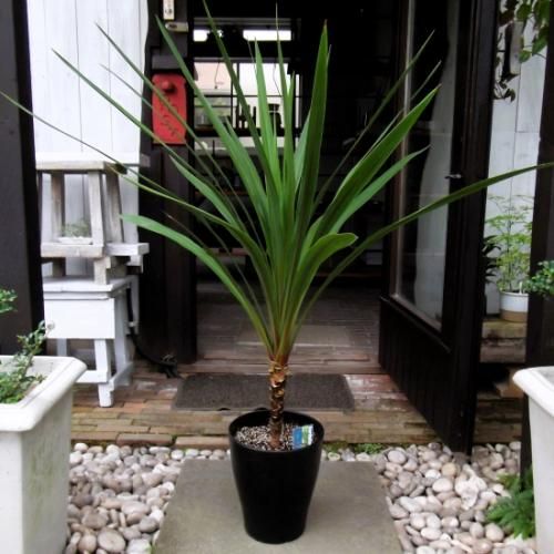 オーストラリスは剣状の葉が放射状に広がる美しい姿の観葉植物です。寒さに強い種類が多く、庭木としても人気があります。商品は明るいグリーンの葉の根元部分が赤くなる品種です。