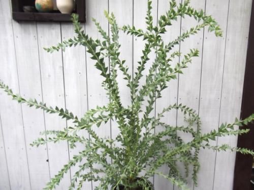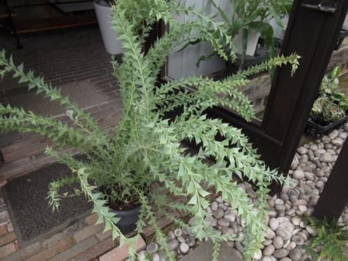 葉身が退化して代わりに葉柄が平らな三角形の仮葉になっている個性的な姿のアカシアです。春には鮮やかな黄色い花をたくさん咲かせます。