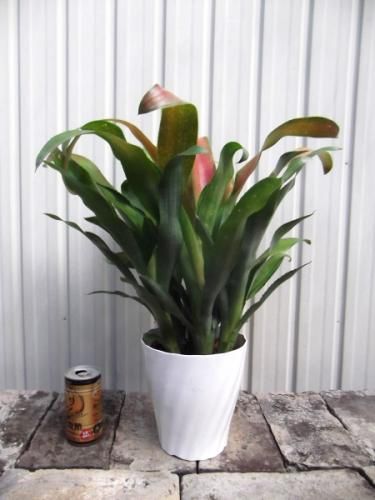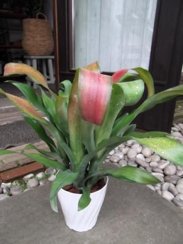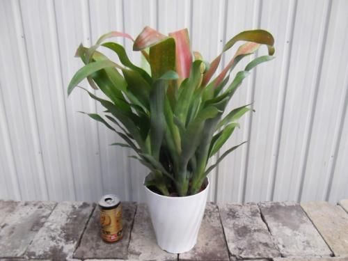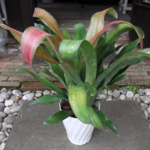 ビルベルギアは熱帯アメリカの森林で樹木や岩肌にへばりつくように生育しています。細長い葉が重なり合い筒状になるのでツツアナナスと呼ばれます。商品は淡いピンク色に白いスポットが全体に入る品種です。青い綺麗な花を咲かせます。子株が出やすいので、比較的早く群生株になります。
