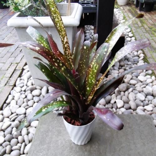 ビルベルギアは熱帯アメリカの森林で樹木や岩肌にへばりつくように生育しています。細長い葉が重なり合い筒状になるのでツツアナナスと呼ばれます。葉の模様や色彩がエキゾチックな雰囲気です。