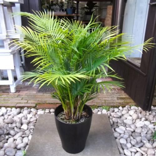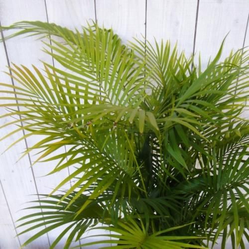 アレカヤシに似たライトグリーンの葉が爽やかな印象です。アレカヤシと比べると葉は大きくてシャキっと伸びて優美にアーチする姿が美しい。