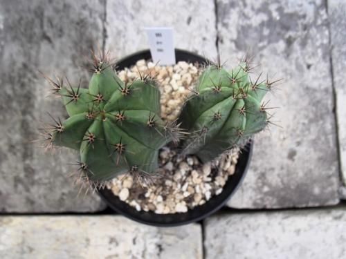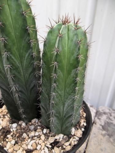 白粉を吹いた肌に短い刺を持ちます。刺は初めチョコレート色で後に黒褐色、最後は白くなります。肌の白粉が成長に合わせて縞模様になり美しい。