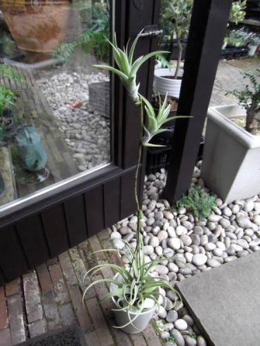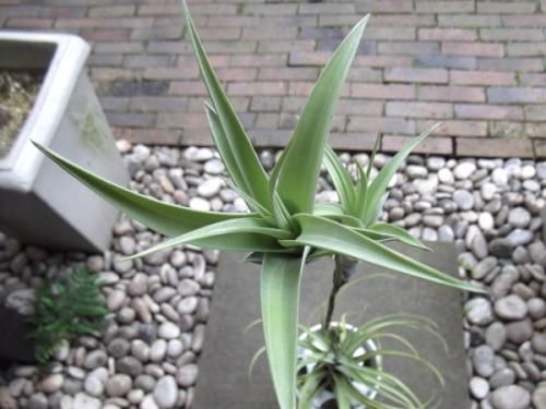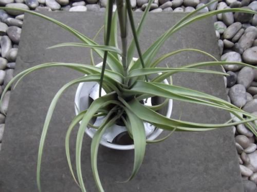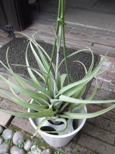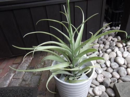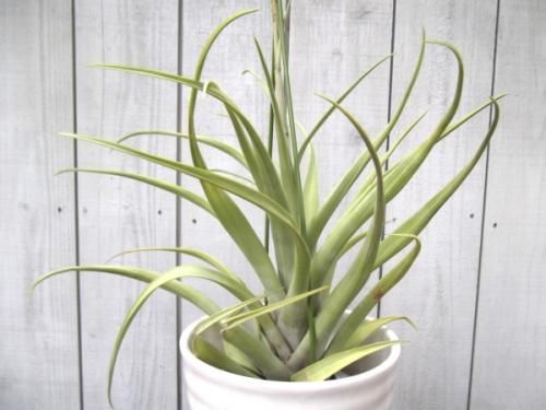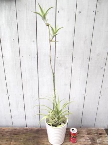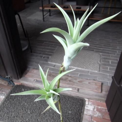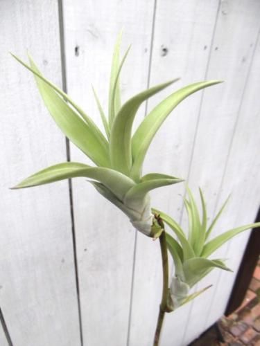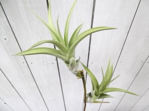 葉は鱗片に被われていてシルバーがかったグリーンの綺麗な葉です。チランジアの中でも大きく育つタイプで存在感があります。成長すると茎を伸ばした先に子株を連ならせる状態(ヴィヴィパラ)になります。