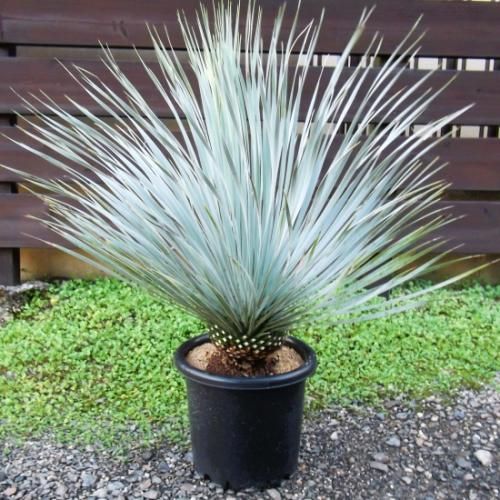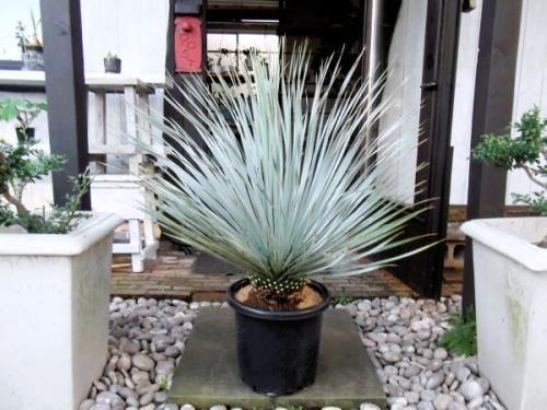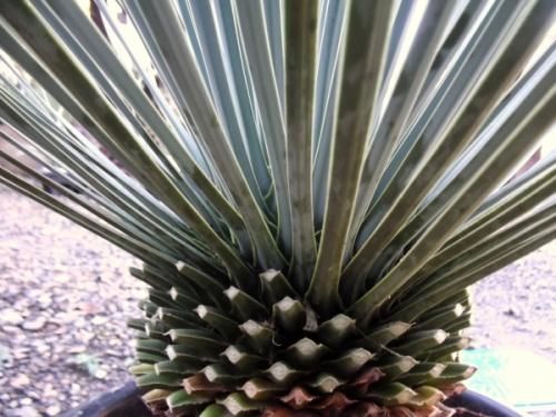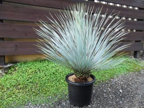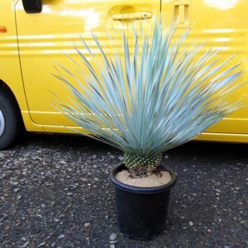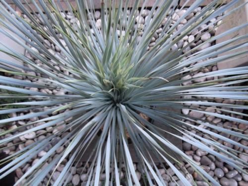 幹の頂上にシルバーブルーの串状の葉が放射状に無数に出ます。乾燥や寒さに強く丈夫で、ガーデニングプランツとして海外でも人気です。流通が非常に少なく、希少な植物です。
