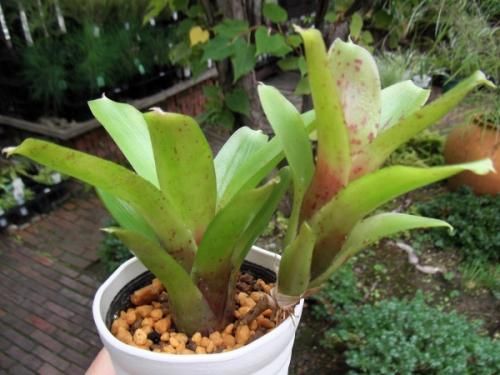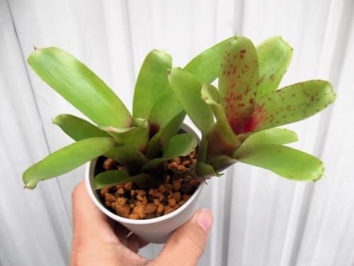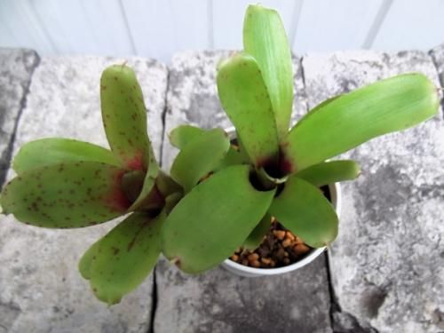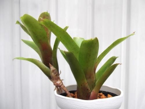 ネオレゲリアは熱帯〜亜熱帯アメリカに多く分布する植物です。その種類は4000品種以上もあります。多くはロゼット状に葉が出て株中央に水を留める筒部を形成します。