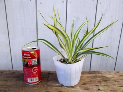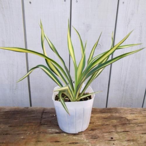 黄色の斑入りの剣状葉は、他のユッカに比べ柔らかく細い。葉の縁の部分が薄く解れて糸状(フィラメント)になるのが特徴です。成長するとベル形の白い花を咲かせます。冬は葉の斑の部分が赤くなり綺麗です。