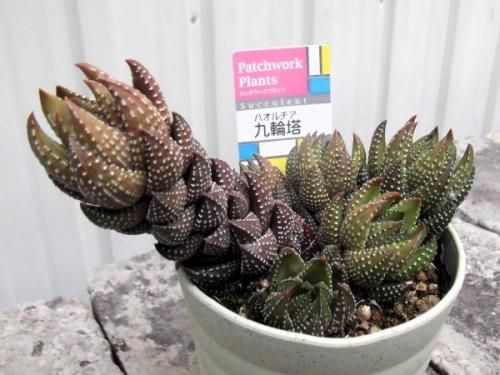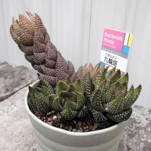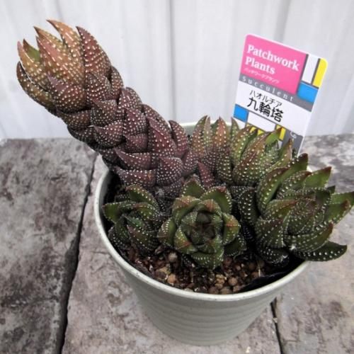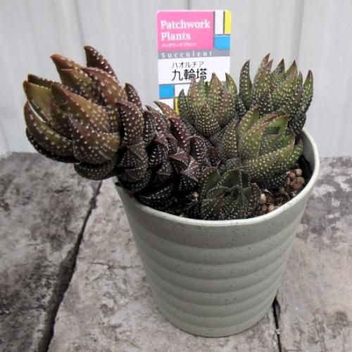 ハオルチアは春秋生育型の多肉植物です。「軟葉系」と「硬葉系」に分けられます。商品は硬葉系品種で、爬虫類の皮膚のような質感の葉が塔のような姿に成長します。ドット柄の白い模様が特徴です。