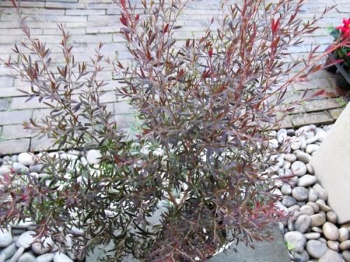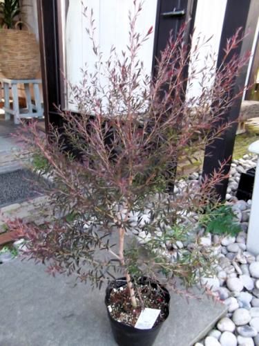 ギリシャ語のレプトス(細長い)とスペルマム(種子)に由来した学名です。50種類ほどあります。別名ティーツリーとも呼びます。商品は繊細な葉が銅色に紅葉する姿が印象的な品種です。春〜初夏に白花が咲きます。