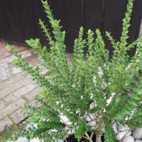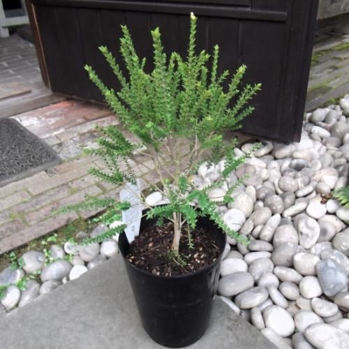 メラレウカのほとんどがオーストラリア原産で140種ほどあります。短い針状や鱗片状の葉を多数着ける植物でティーツリーとも呼ばれます。商品は先端が尖った小さな葉が連なる枝ぶりが特徴的です。