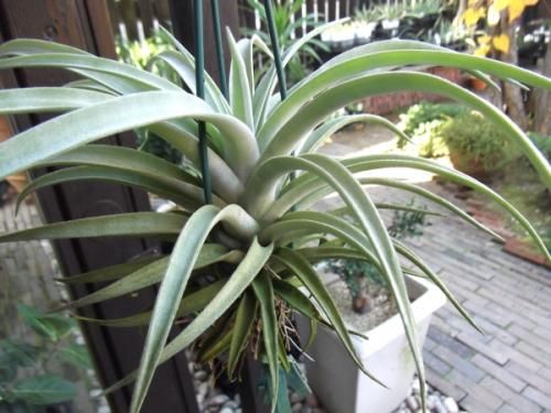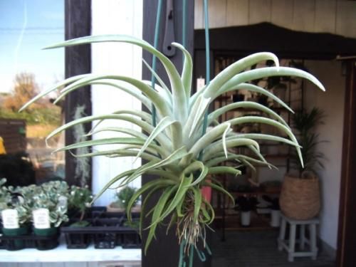 チランジアは土で植えなくても育つため、エアープランツと呼ばれます。手軽に飾れる植物として人気です。ハリシーは、葉が灰緑色で鱗片に被われます。丈夫で育てやすい。
