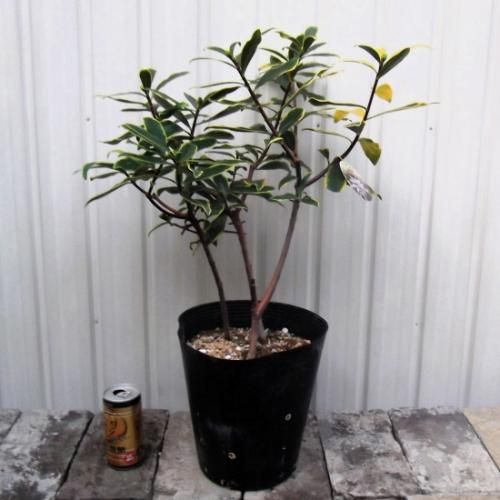 斑入りジンチョウゲは常緑低木で、花の香りがすばらしく、庭木・生垣によく利用されます。3〜4月、強い芳香のある花を枝先に塊状につけます。商品は覆輪斑が入る斑入り品種です。