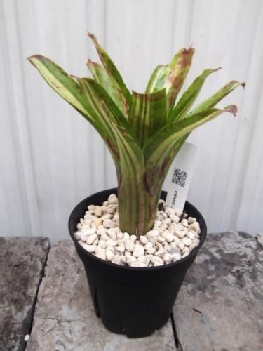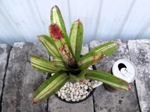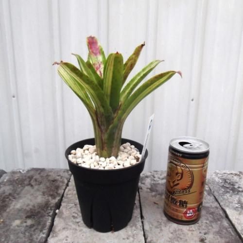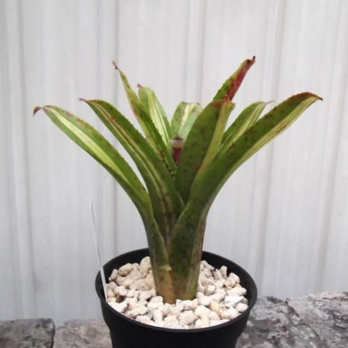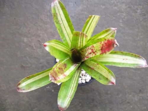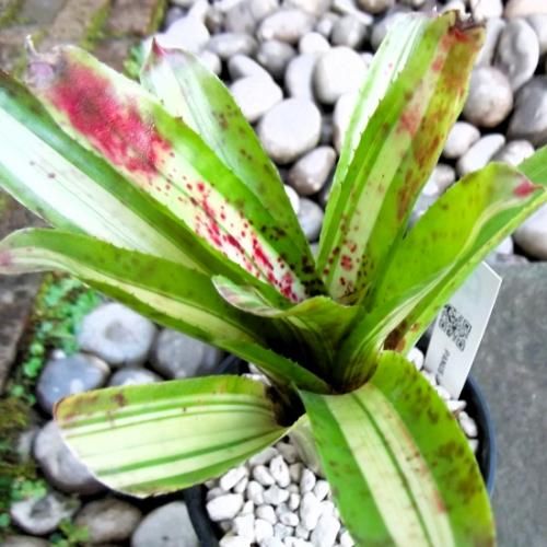 ネオレゲリアは4000品種以上もあります。多くはロゼット状に葉が出て株中央に水を留める筒部を形成します。商品は中斑タイプの葉にピンクのスポットが入る葉が美しい。