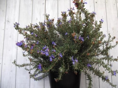 線のように細い葉をもつアングスティフォリア・グループ(Angustifolia Group)に分類されています。花の色は濃い青色から濃い青紫色をしていて、男性的な落ち着いた雰囲気を感じさせます。樹形は半匍匐性に盛り上がるように成長するため生垣などにおすすめです。