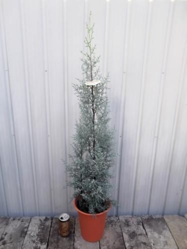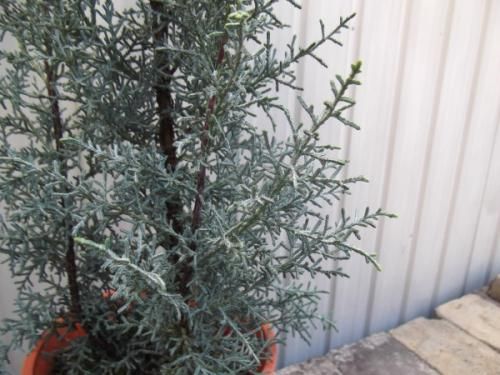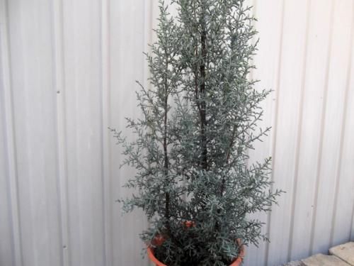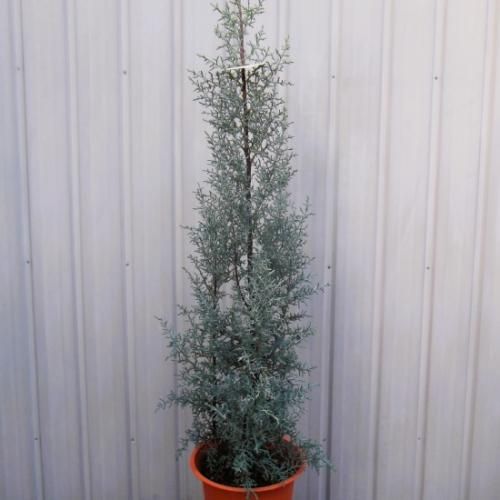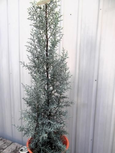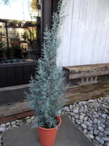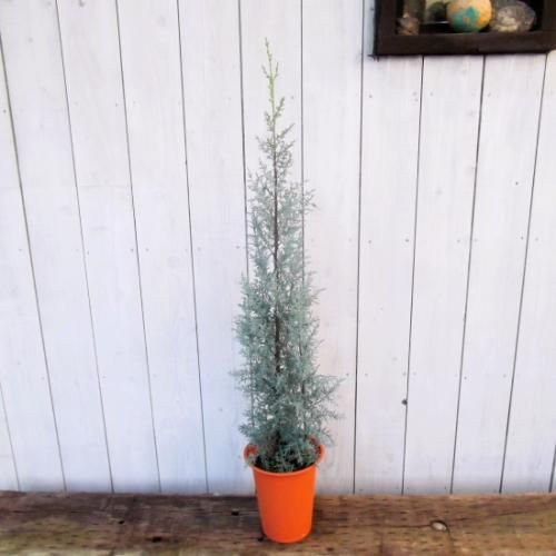 濃い目のブルーがかったきれいな葉色のコニファーです。葉を触ったり風に揺れた時には独特な香りがします。生育はやや遅めで自然樹形で端正な円錐形に整うのでクリスマスツリーに最適です。