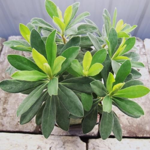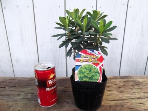 ユーフォルビアは、地中海沿岸の乾燥した斜面や松林に自生する耐寒性常緑多年草です。個性的な花と存在感のある草姿が人気です。マルティニは、緑色の葉が密生して生えて、草姿がコンパクトにまとまる品種です。早春に赤目のある黄緑色の花が咲きます。